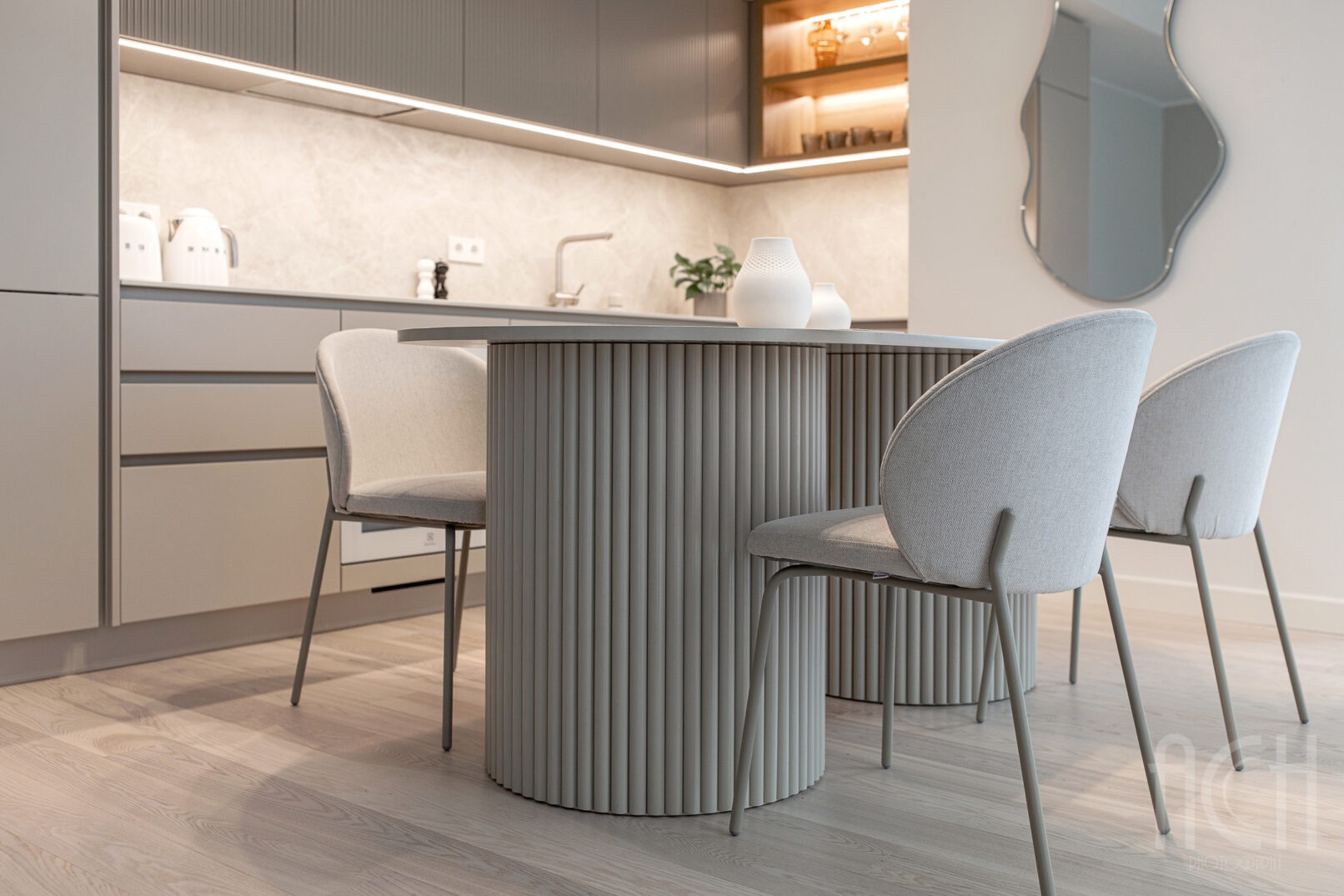 Kitchen furniture in warm grey colours